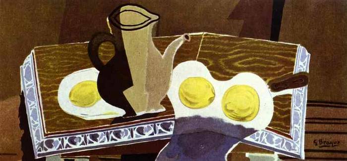 Jarra vaso y limones - Pintura y obra de Georges Braque
